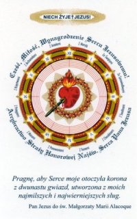 Dlatego obieram sobie godzinę ….. trwania w Twojej obecności, aby łącząc się w duchu ze wszystkimi czcicielami Twego Najświętszego Serca, uwielbiać Twoje imię, okazywać Ci miłość, wynagradzać za siebie i innych. Niech coraz doskonalej wypełnia się Twoja wola w moim życiu i na całym świecie. Amen.